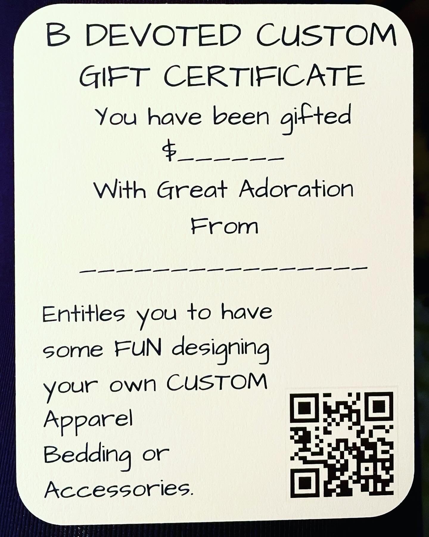 This Gift Certificate covers the cost of a custom dress, plus usps ground shipping.